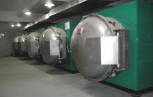 圖為真空乾燥車間,與傳統(tǒng)空氣乾燥相比,真空乾燥可將殼模生產(chǎn)週期從七天以上降至1天以內(nèi)。並且真空爐內(nèi)能夠充分有效地乾燥型殼中的硅溶膠及水份,提高型殼強(qiáng)度和